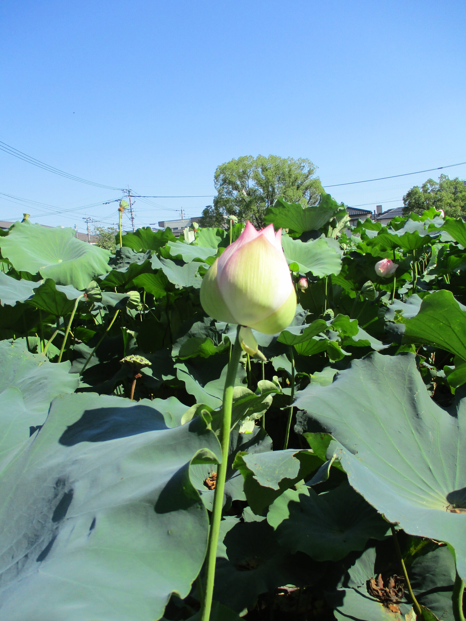 蓮の花はちょうど見頃で、水面からスッと伸びた茎に咲く花がとてもキレイでした✨