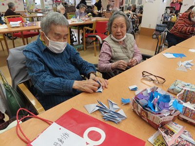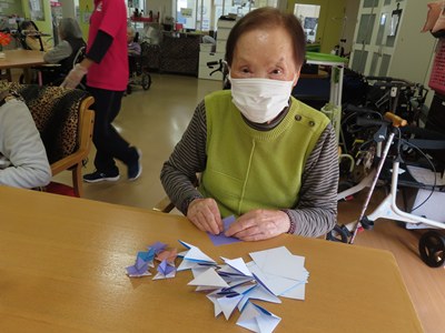 皆で折り紙です。